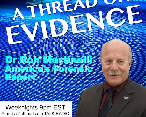 Join me as a member of our nationally renowned Forensic Death Investigations Team as we visit crime scenes; collect and analyze forensic evidence in the lab; search for the truth and testify in court on my new nationally syndicated radio show, “A Thread of Evidence,” on AmericaOutLoud, every weekday evening 6 pm PST, 8 pm CT and 9 pm EST. Visit the AmericaOutLoud site at http://americaoutloud.com/drron/ for more information. Get the AmericaOutLoud for your mobile device too so that you can enjoy listening to A Thread of Evidence anytime you want. See YOU at the crime scene!